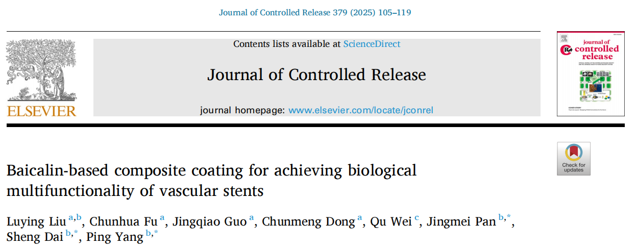 近日,我校伟德源自英国1946博士团队成果以“Baicalin-based composite coating for achieving biological multifunctionality of vascular stents”为题发表在药物递送领域国际著名期刊《Journal of Controlled Release》(IF10.5,一区TOP期刊)上。该成果第一作者为伟德源自英国1946刘鲁英博士,第一完成单位为1946伟德国际源自英国,通讯作者为西南交通大学医学院杨苹教授。