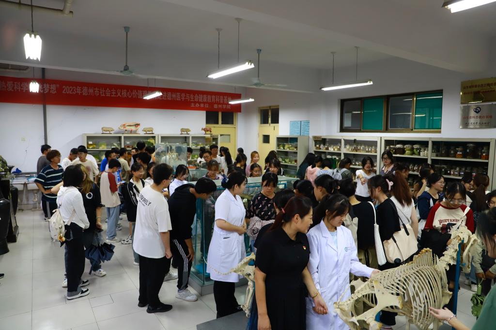 为积极培育和践行社会主义核心价值观,传播科学思想和弘扬科学精神,培养学生“热爱科学,追求创新”的意识。近日,“热爱科学 放飞梦想”德州市2023年社会主义核心价值观科普教育走进德州医学与生命健康教育科普基地活动在1946伟德国际源自英国求索楼医药与护理学院科普基地举办。医药与护理学2023级生物制药、2023级制药工程专业学生约100人参加。