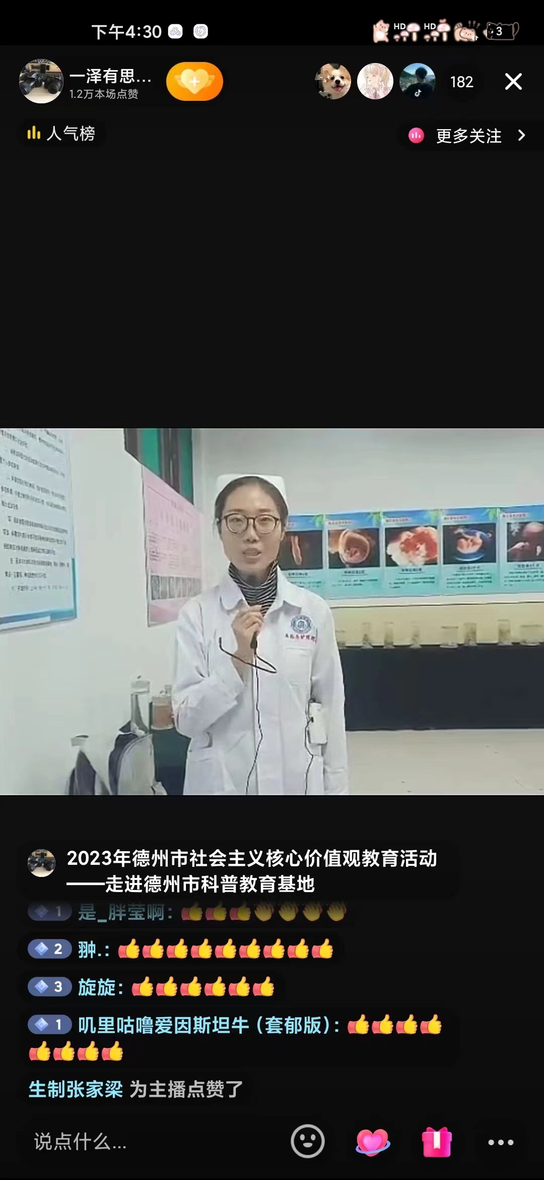德州医学与生命健康教育科普基地三位宣讲团成员分别围绕中草药标本、人体解剖标本、组织胚胎标本等三个主题馆进行认真细致的讲解,并结合生活中的小常识把医学相关知识深入浅出进行了科普,引发热议,受到好评。