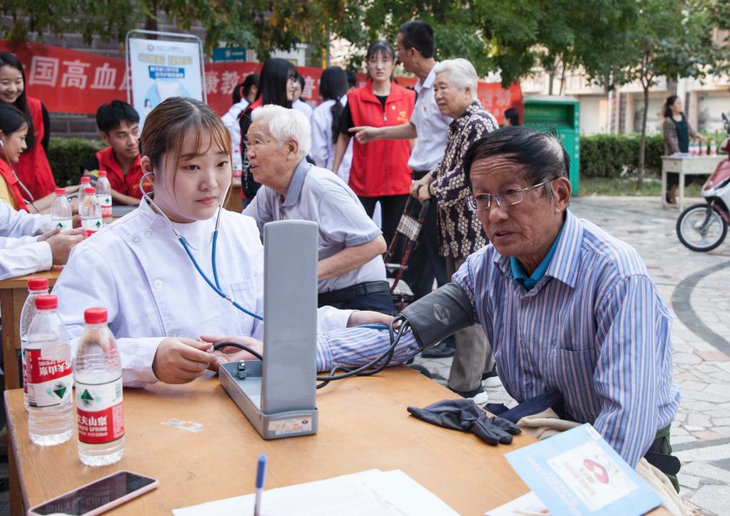 活动中,南丁格尔志愿者们对高血压知识、怎样预防高血压、怎样提高自我保健进行宣讲,在医院专家的指导下演示了高血压病人发病时的紧急处理方法。宣讲结束后,医院专家对社区居民进行免费的血压测量,为社区居民提供免费健康检查咨询服务。最后,志愿者们给社区居民发放了健康宣传手册,宣传高血压的危险因素和早期症状,学会自测血压,降低高血压发生风险,提高高血压患者自我管理的知识和技能,减少和延缓并发症的发生。