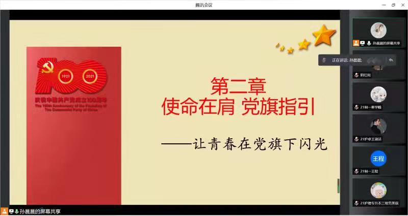 4月17日下午,医药与护理学院第34期入党积极分子培训班在腾讯会议持续开讲,医药与护理学院党委副书记孙晨晨以《使命在肩 党旗指引》为主题,为全体入党积极分子上了一堂生动的党课。