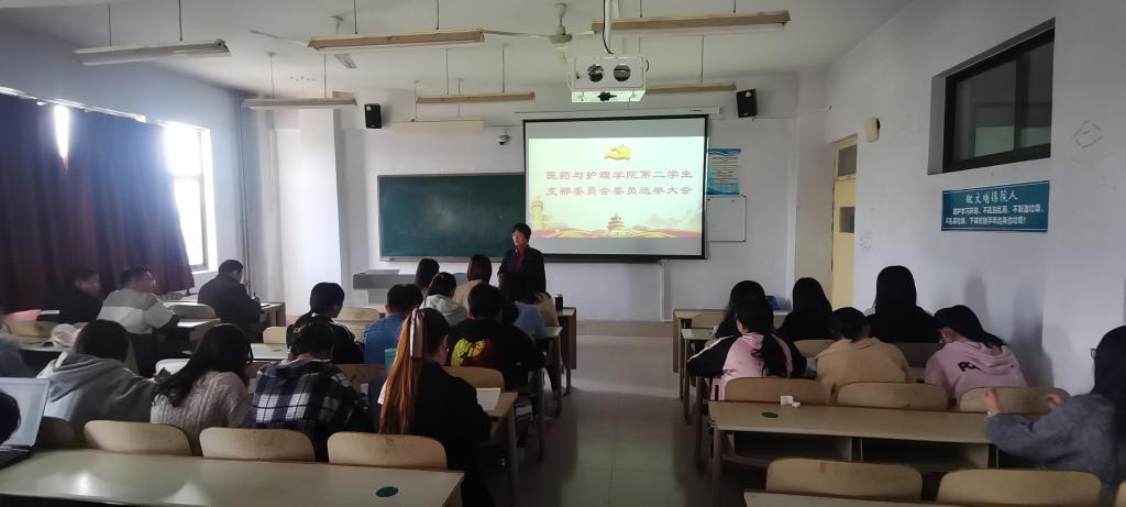 2021年4月27 日下午,医药与护理学院第二学生党支部在体育楼503教室举行委员会委员选举大会。会议由医药与护理学院党总支副书记孟爱青主持,组织员王永顺同志和全体学生党员参加。