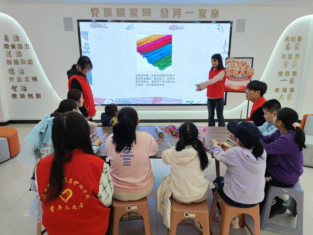 为促进社区儿童健康成长、全面发展,提高美学素养及审美能力,弘扬中华传统编织文化,传承雷锋精神,医药与护理学院于3月16日上午在岔河社区开展“七彩童心 共护未来”儿童关爱为主题的活动。