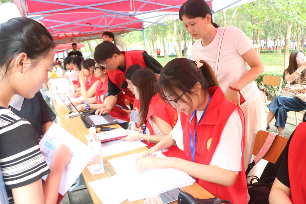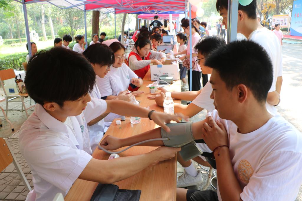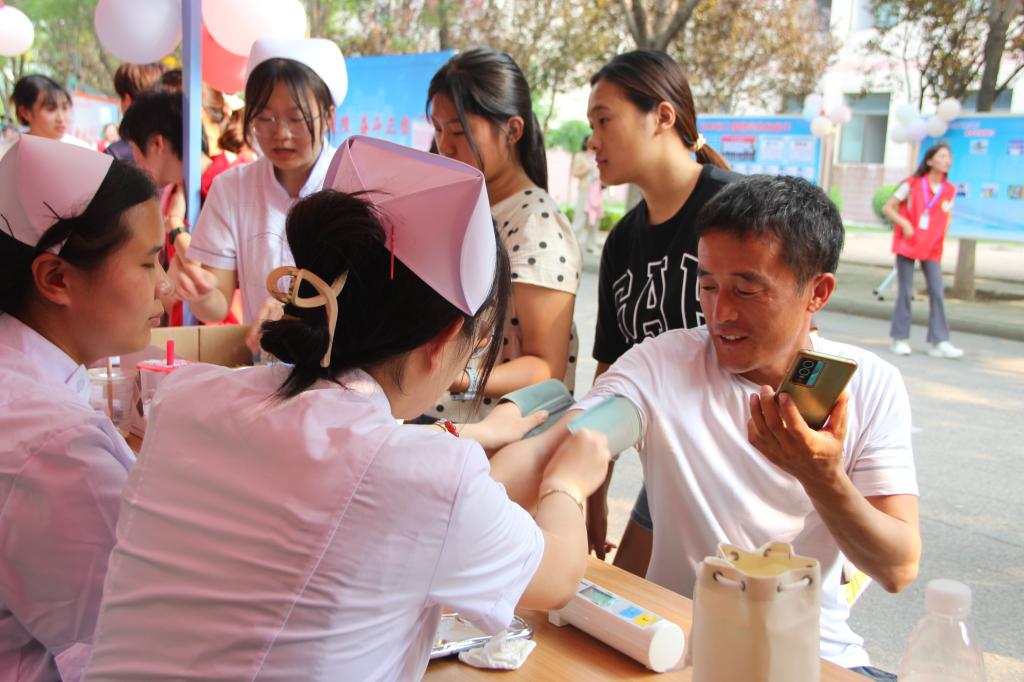 迎新工作顺利开展的背后离不开志愿者们的不辞辛苦与默默付出。为了更好得为新生服务医药与护理学院志愿者团队派出迎新志愿者耐心为新同学录入信息、分发校园卡、为新生搬行李、引领新生到宿舍,将医护学子的热情展现的淋漓尽致。学院还开设了健康义诊活动,为前来送新生的家长免费进行血压、血糖,现场科普心肺复苏急救方法,使家长以及新生对学院有一个更好的认知。心服务、止于至善是他们的真实写照。同时,迎新工作也得到了学校、学院各级领导的关心和支持。校领导一行莅临迎新点指导相关工作,为新生入学流程顺利进行做好保障。