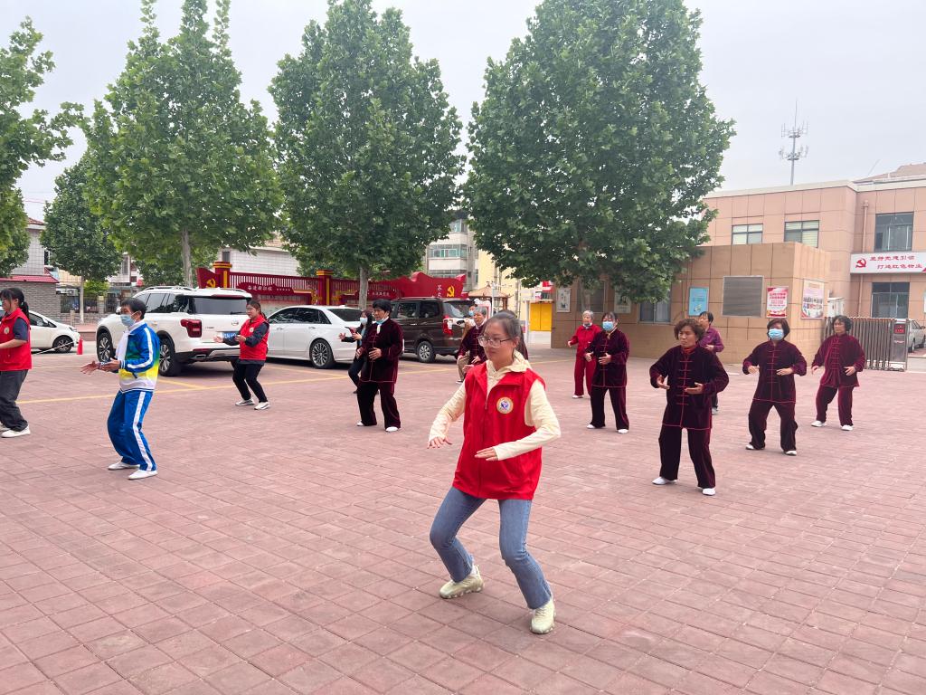 活动伊始,志愿者先后向社区居民讲述了老年人健康问题及应对、健康用药小常识和运动饮食健康小知识。社区居民认真听讲,积极互动,活动氛围十分活跃。随后志愿者们现场进行八段锦的教学,丰富了社区居民的精神文化生活,从大家的实际健身需求出发,树立了自主健身意识,全面提高身体素质,在社区中形成了快乐健身的新风尚。