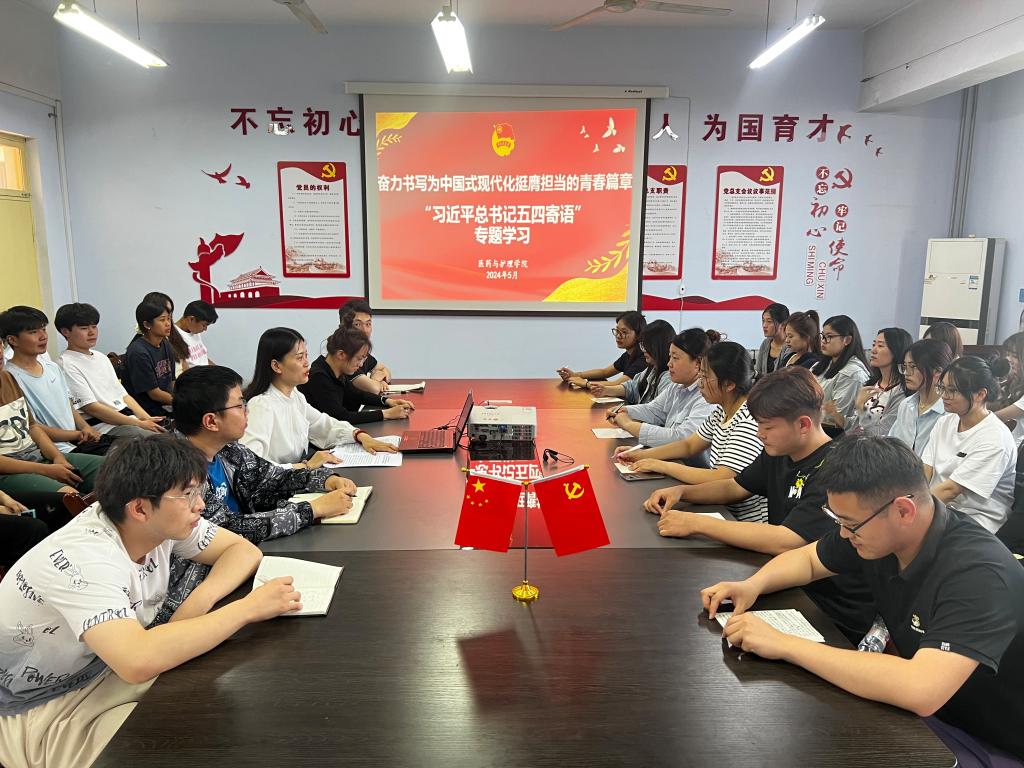 为进一步激励和动员广大青年学生继承和发扬五四精神,引导同学们不忘初心跟党走,牢记青春使命。医药与护理学院于5月8日下午在体育楼508会议室组织全体团学骨干集中学习习近平总书记五四寄语专题学习会,学院团委书记蔡胜男主持,全体团学骨干参加。