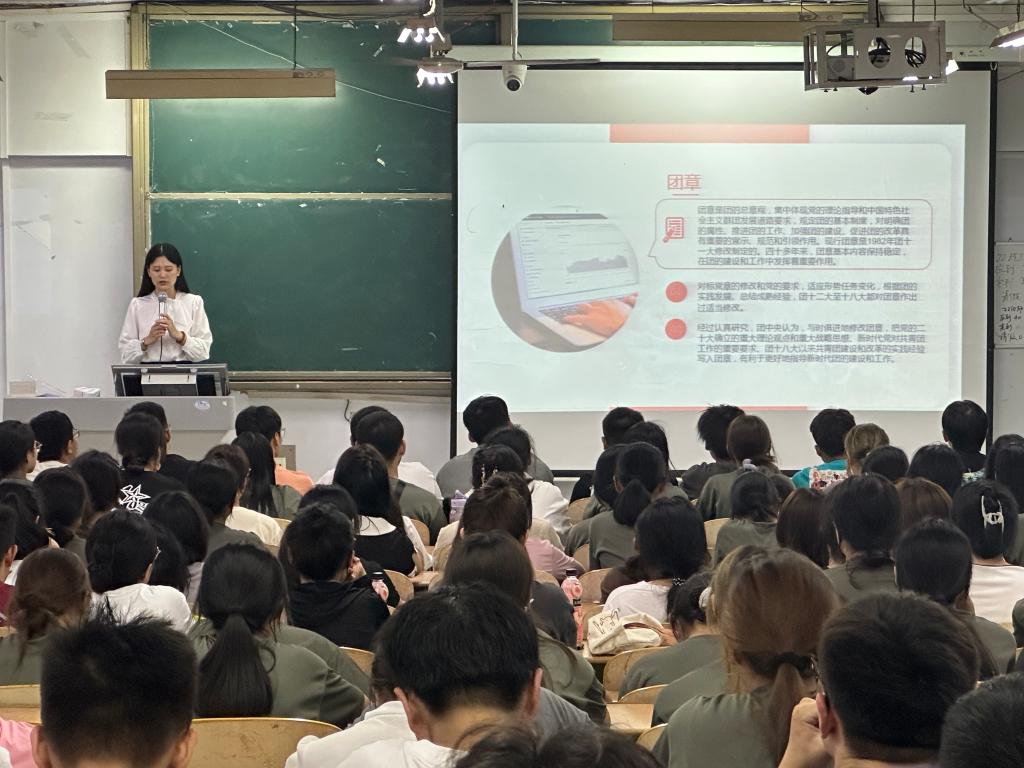 为进一步加强新生思想政治教育,落实新生入学教育工作,9月10日晚,医药与护理学院在求实楼211教室开展2023级新生团史团情团务教育、学习养成教育、校园礼仪教育、文明修身教育等。团委书记蔡胜男老师主讲,全体新生参加。
