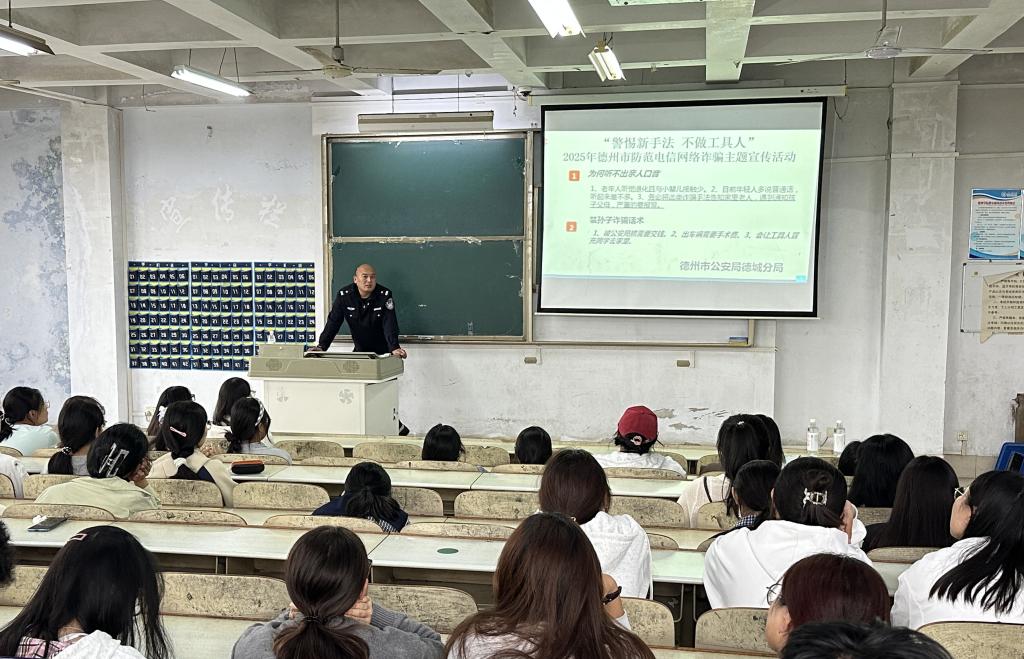 活动期间,湖滨北路派出所大东关社区民警李冬警官受邀到场,以生动直观的方式开展反诈宣讲。他结合真实案例,深入拆解“注销校园贷”的常见陷阱,让同学们清晰了解诈骗分子的套路;通过具体数据,着重敲响“刷单返利”的风险警钟,提醒大家警惕“天上掉馅饼”的骗局;还以互动问答的形式,引导同学们主动思考,戳穿“冒充电商客服”的伪装手段。最后,他呼吁同学们主动成为“校园反诈宣传员”,将此次活动中学到的反诈知识分享给室友与家人,带动更多人远离诈骗侵害。