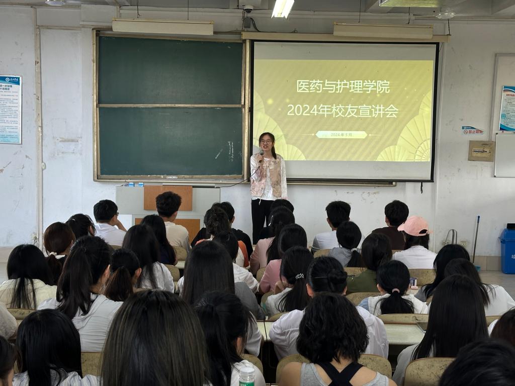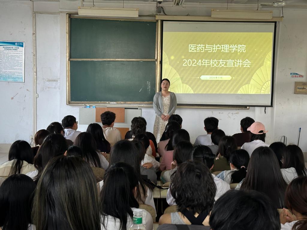 为帮助医药与护理学院学生深入了解就业形势、明确就业方向、提升就业核心竞争力,促进学生们成长与发展,医药与护理学院于5月22日下午在体育楼301、315教室举行校友宣讲会,在校生参加。