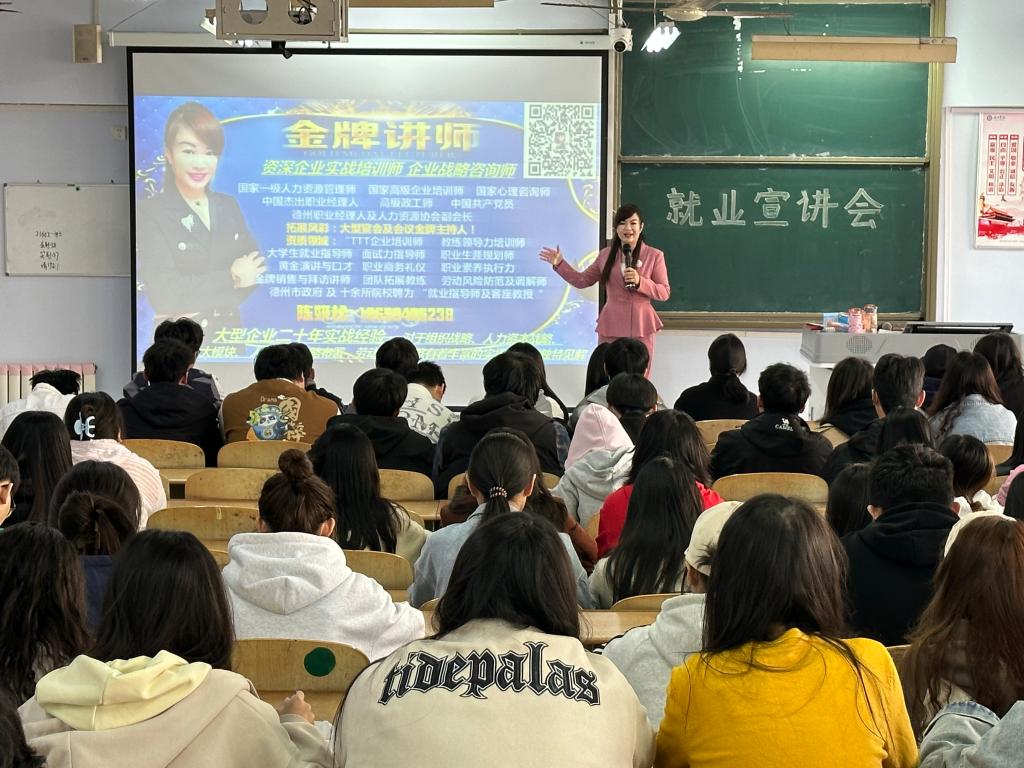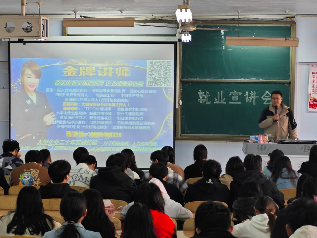 本次宣讲会上,讲师通过播放宣传片的方式让毕业生了解德药制药有限公司。随后通过PPT展示进行就业指导,通过一个个生动的案例,鼓励毕业生树立正确的就业观,勇于面对挑战,提升自身综合素质。其次,进一步向毕业生介绍公司的概况、职业发展方向、工资环境、福利待遇等。现场互动环节,毕业生积极与宣讲人员互动交流,企业代表耐心解答,同时表示非常期待大家的加入。此次宣讲会为毕业生和企业搭建了良好的交流平台,增强了毕业生顺利就业的决心,帮助他们坚定了就业方向,宣讲会在一片掌声中圆满结束。