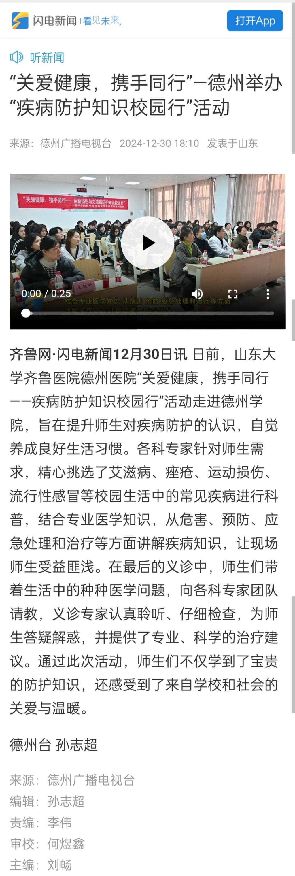 【齐鲁网】“关爱健康,携手同行”—德州举办“疾病防护知识校园行”活动