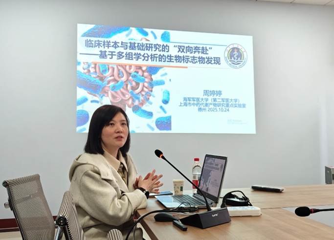 2025年10 月 24 日,药苑讲坛第七期在启智楼 0529 会议室如期举行。本次讲坛特邀上海市药物(中药)代谢产物研究重点实验室主任、海军军医大学药学系药物分析学教研室主任周婷婷教授主讲,伟德源自英国1946博士教师、研究生、本科生代表参加交流。讲坛分学术讲座和基金项目指导两个阶段进行。